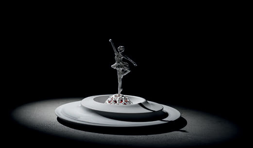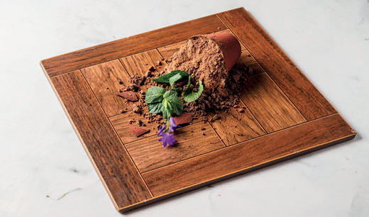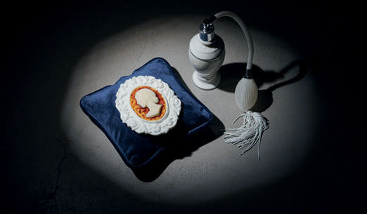 Этот высокохудожественный десерт отсылает нас к старинной камее, тонкому украшению из камня и кости. Моя идея — показать, каким оно могло бы быть на вкус. Вот эти консервативные, традиционные женские ароматы — роза, ваниль и миндаль, словно вырвавшиеся из того самого флакончика с духами на трюмо, — создают удивительно точный образ классического ювелирного изделия.