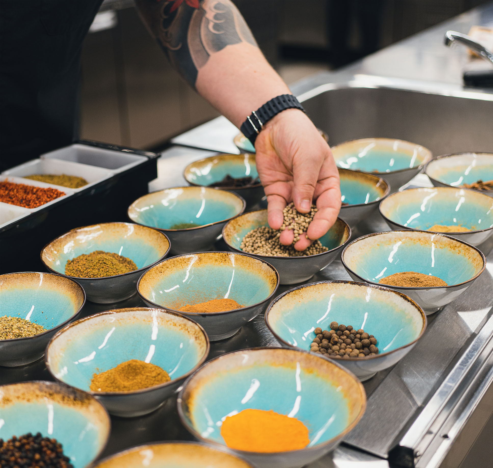 В нашем ресторане используется много специй, и, конечно, я сам их большой поклонник — понимаю состав, хорошо чувствую вкус, тональность, сочетания. Помимо такой врожденной способности мне помогает большой опыт.