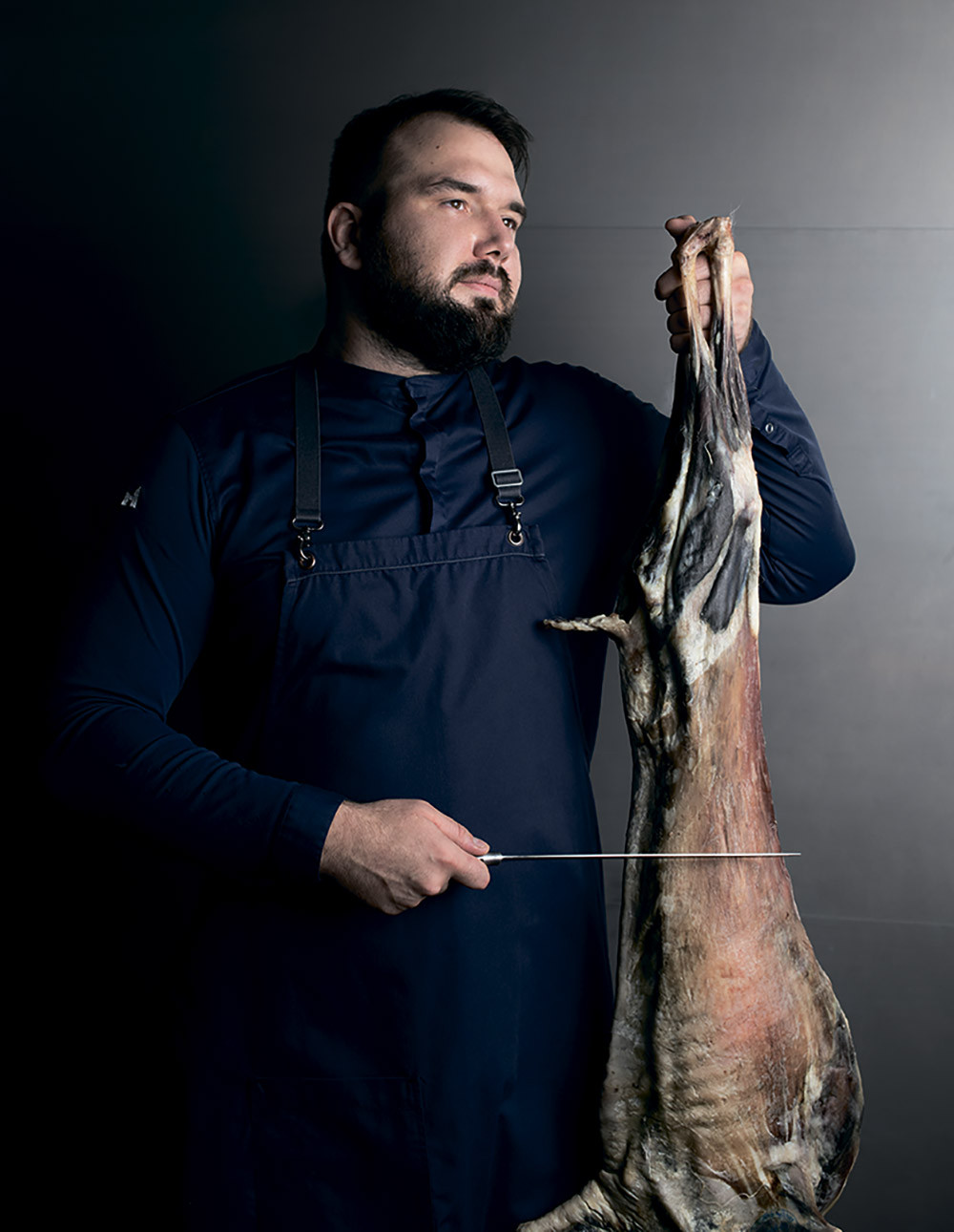 В «Пифагоре» использую все технологии, имеющиеся на моей кухне, мое оборудование и мои знания. Скрещиваю разные технологии приготовления, чтобы добиться желаемого результата. Например, если просто запечь лопатку козленка в дровяной печи, то получится твердый, как кора дуба, едва жующийся кусок мяса, а если ее предварительно сварить в су-виде, а уже потом доготовить в печи, результат будет потрясающим. Раньше, когда су-вида еще не было, засоленный кусок мяса обжаривали в специях, заливали бульоном, добавляли масло и много часов томили на медленном огне.