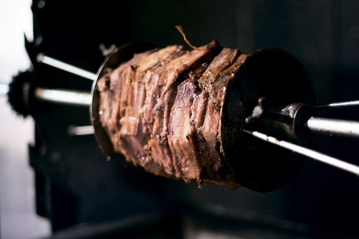 В «Пифагоре» очень много огня и воды. С одной стороны открытой кухни расположен raw bar, где мы обрабатываем свежую рыбу, готовим крудо, севиче, устриц и морских ежей. На другой части кухни стоят дровяная печь, хоспер, открытый мангал и вертел. На вертеле готовим замечательный гирос: насаживаем заранее замаринованное мясо индейки, а когда оно крутится, постоянно смазываем ароматным маслом, из-за чего мясо приобретает еще более привлекательную корочку. Кстати, традиционно греки, как и другие жители Средиземноморья, используют веточку укропа или другой свежей зелени как кисть, чтобы при жарке смазывать рыбу или мясо. Но мы живем в XXI веке, и, к счастью, у нас есть силиконовые кисточки. «Пифагор» — современный ресторан, мы уважаем традиции, но также идем в ногу со временем.