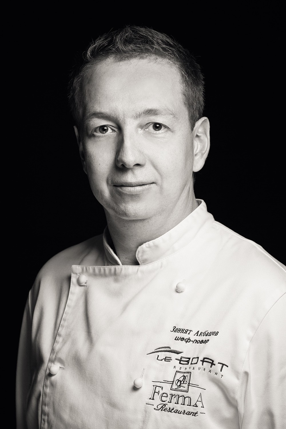 О карьере в ресторанном бизнесе Зиннят Акбашев никогда не мечтал и попал в профессию, как и многие коллеги, совершенно случайно. А грезил он сначала судоводительским, а затем строительно-архитектурным факультетами. На первый поступать передумал, на второй не набрал нужного количества баллов. Чтобы чем-то себя занять до следующей попытки, решил изучить кулинарию — всегда пригодится. И сам не заметил, как выбор стал судьбоносным. Сегодня Зиннят Акбашев — бренд-шеф холдинга White Group и шеф-повар ресторанов Ferma.