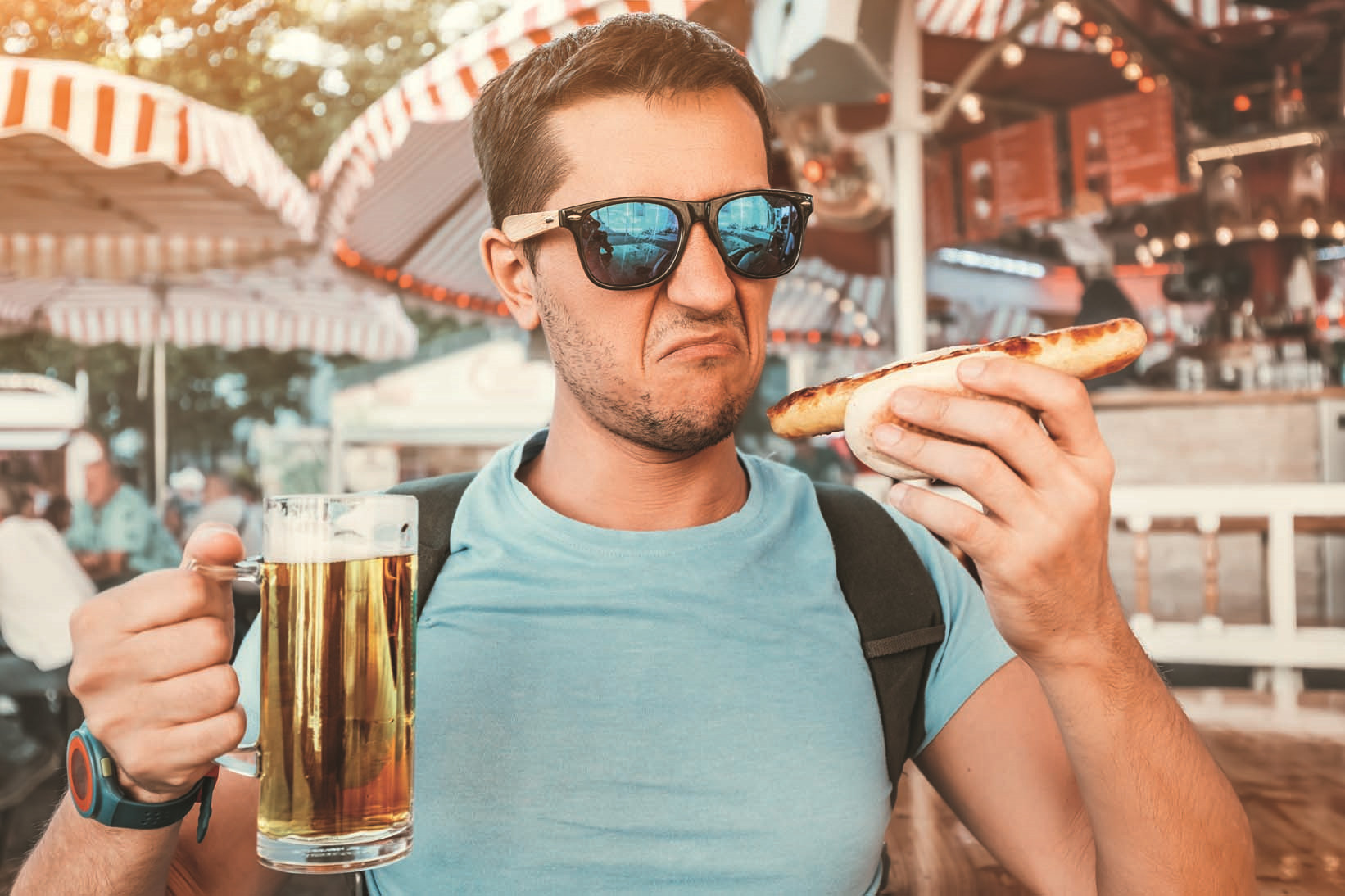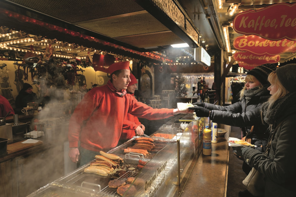 У каждого региона Германии есть свой колбасный рецепт. Например, в Нюрнберге вам подадут экземпляры размером с мизинец, и этому есть историческое объяснение: крохотными колбасками когда-то потчевали заключенных, просовывая их через решетку или в замочную скважину. А вот жители Вюрцбурга, напротив, склонны к гигантомании: цена колбасы в местных заведениях указывается в расчете… за метр. Ну а самая знаменитая колбаса — баварская белая Weisswurst. 22 февраля 1857 года Мозер Зепп, хозяин закусочной в центре Мюнхена, впервые предложил гостям этот оригинальный деликатес. По сей день его рецепт остается неизменным: исключительно парные телятина и свинина, ароматные травы, пряности и колотый лед. Едят колбасу со сладкой горчицей и в прикуску с солеными кренделями — брецелями. Одна из «фишек» Франкфурта-на-Майне — тонкая длинная сосиска франкфуртер. Говорят, именно её привезли в Новый Свет немецкие иммигранты, а уже затем она была помещена в длинную булочку и названа хот-догом. Интересные колбасные эксперименты любят во Франконии: здесь вам предложат… голубые сосиски. Не спешите отказываться: они отварены в белом вине с луком и уксусом и бесподобны на вкус.