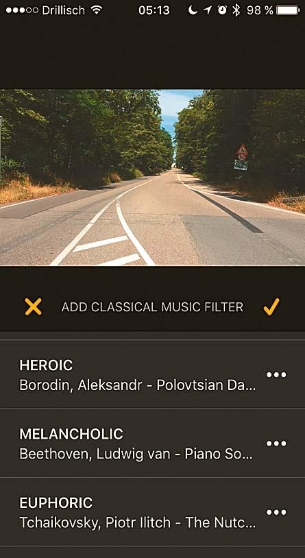 Приложение для обработки видео Epicgram придаст любому ролику на вашем смартфоне характер легенды. Для этого в нем используются два довольно эффектных приема: замедленное воспроизведение фрагментов видеозаписей и наложение на них монументальных произведений классической музыки — например «Полет валькирий» Рихарда Вагнера в качестве приветствия. Приложение всегда работает в три этапа: сначала вы снимаете ролик или выбираете видео из своей медиатеки, затем задаете фрагмент для показа в замедленном режиме, а под конец решаете, какая классическая музыка будет сопровождать ваш ролик. Epicgram предлагает на выбор множество произведений. Все композиции разделены по настроению, чтобы идеально соответствовать видео.