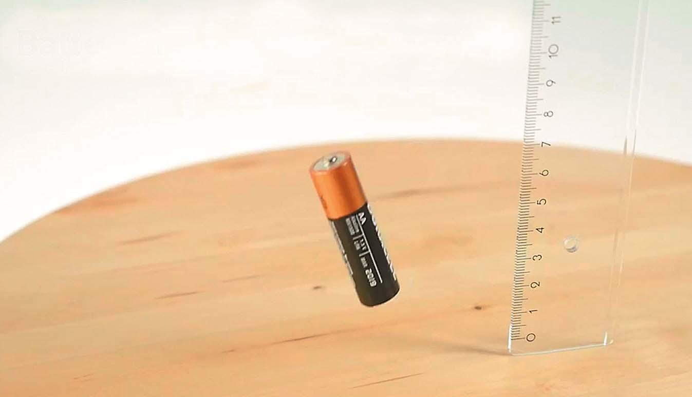 Даже если у вас нет под рукой специального прибора для измерения заряда батарейки, вы все равно можете узнать, заряжена ли она. Уроните батарейку вертикально на стол с высоты примерно 20 см. Если батарейка полностью разрядилась, то она отскочит от стола на пару сантиметров. Если заряд на батарейке есть, то она не подскочит, а сразу упадет на бок. Объяснение: алкалиновые батарейки заполнены желеобразной массой, которая абсорбирует энергию падения, поэтому батарейка падает на бок. Если же батарейка села, то желеобразная масса затвердевает, а батарейка подпрыгивает при падении.