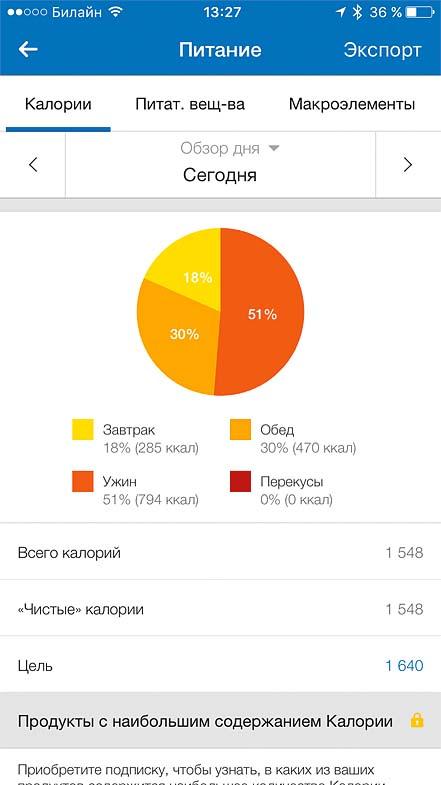 При желании с помощью приложений можно спланировать весь свой день. Они могут выступать в разных качествах, в том числе персонального секретаря и фитнес-тренера. К последней категории относится MyFitnessPal. Эта программа непрерывно следит за питанием и физической подготовкой своих «подопечных». С малыми усилиями приложение фиксирует, когда и что вы ели, какие тренировки выполнили, сколько воды выпили и какой у вас вес. Для контроля за своим питанием можно воспользоваться предлагаемыми вариантами приема пищи от различных заведений. Сканер считает штрих-коды на продуктах. Все упражнения придется вводить вручную или предоставить MyFitnessPal доступ к тем приложениям, которые обычно следят за вашими тренировками. Калории, потраченные при ежедневной ходьбе, этот фитнес-помощник на iOS вычисляет с помощью данных от приложения Apple Health. Собрав сведения о питании и движении, приложение подводит баланс полученных и потраченных калорий и выдает прочие оценки питательной ценности продуктов. Изменения своего веса вы можете увидеть в виде диаграммы и поделиться ею с друзьями через социальные сети. При необходимости приложение будет ежедневно напоминать вам о предстоящих задачах. MyFitnessPal предложит надежные ограничения для всех, кто хочет что-то исправить в своем теле. Программа располагает множеством сведений, которые облегчат учет приемов пищи, и охотно сотрудничает с дополнительными приложениями для фитнеса и здоровья. К примеру, она позволяет подключить умную одежду и другие приборы для измерений. Заплатив 3790 рублей в год, вы получите версию Premium без рекламы, с расширенными возможностями анализа и персонализации.