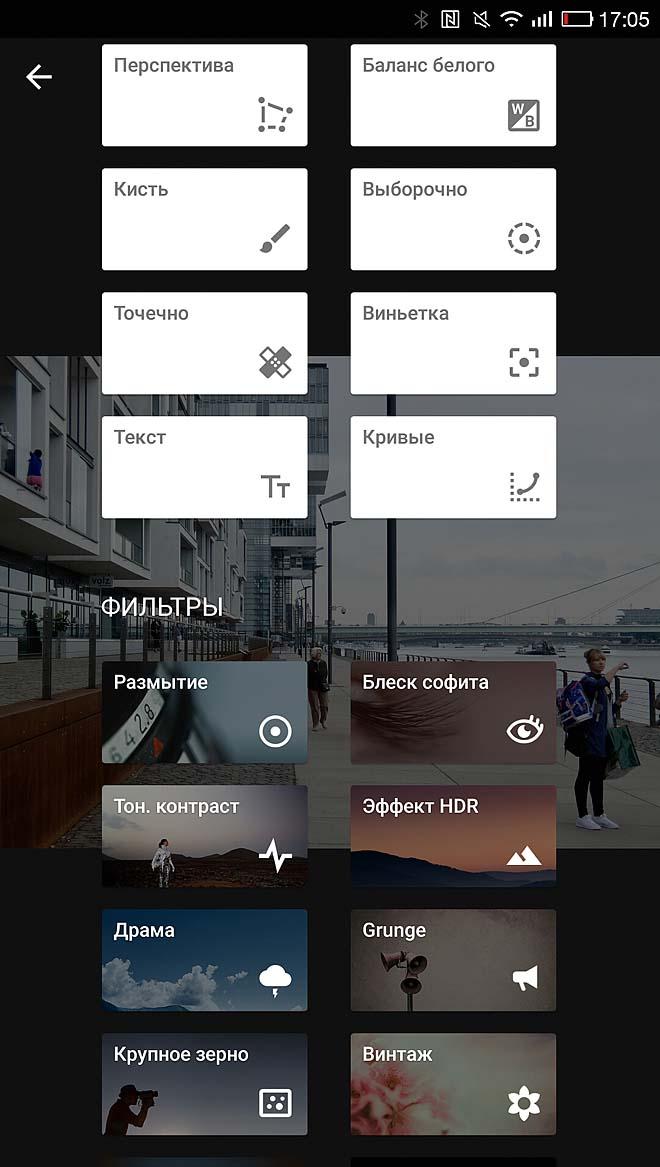 Последняя версия Snapseed, мощного приложения для редактирования изображений на iOS и Android, легко может стать достойной альтернативой настольному пакету Photoshop на мобильном устройстве. Помимо множества функций и фильтров данная утилита предлагает инновационное управление, оптимизированное под жесты. Простым горизонтальным или вертикальным скольжением вы измените яркость, насыщенность, контраст, резкость и баланс белого. Также здесь легко скорректировать линию горизонта. Кроме того, существует возможность обрезать картинку, перевернуть ее и изменить точку фокусировки. Приложение также может похвастаться разнообразными фильтрами для создания, к примеру, черно-белых снимков или приданию им ретро-стиля. При использовании фильтра «драма» достигаются эффекты съемки HDR, а благодаря функции Tilt-Shift ваши фотографии будут выглядеть как миниатюры. Еще одна особенность продукта — возможность тонкой настройки каждого эффекта. Желающие углубиться в оптимизацию могут выделить конкретные области изображения и обработать их, чтобы, к примеру, убрать дефекты или подсветить недоэкспонированные фрагменты. Кроме того, в данное приложение добавлено множество новых опций для редактирования портретных снимков. Для обработки лица, к слову, предлагается 23 специальных фильтра.