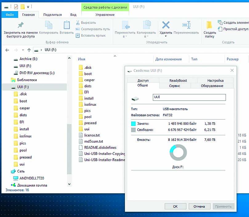 Утилита Universal USB Installer, работающая в среде Windows, записывает образ Ubuntu на USB-накопитель.