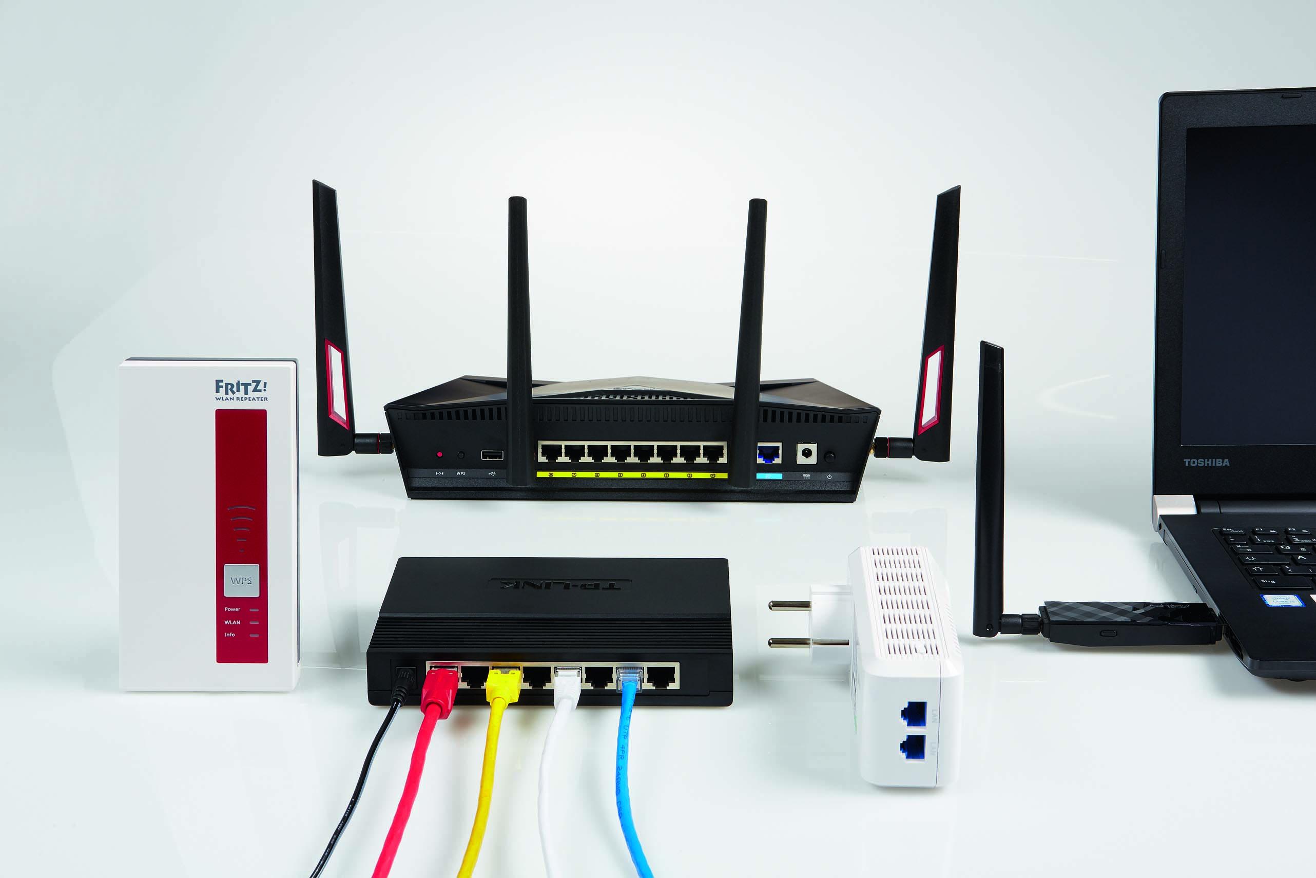 К маршрутизатору сходятся все сетевые кабели. Он обеспечивает работу беспроводной сети и подключение всех устройств к Интернету. Поэтому крайне важно, чтобы он отвечал современным требованиям и поддерживал актуальные технологии. В первую очередь речь идет о стандарте беспроводной сети: тому, кто подключает «быстрые» устройства сетевыми кабелями и использует беспроводную сеть только для серфинга в Интернете, будет достаточно и старой модели, использующей стандарт «n». Приобретение нового «ac»-маршрутизатора имеет смысл только в том случае, если конечные устройства также поддерживают стандарт «ac». Быстрое подключение к Интернету тоже является обязательным. Программное обеспечение роутера должно быть актуальным (см. сайт производителя): если последнее доступное обновление прошивки старше одного года, возможно наличие брешей в системе безопасности.
