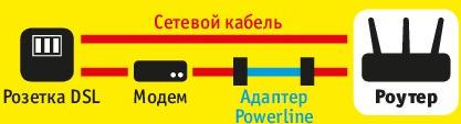 Однако протягивать новый кабель не обязательно: если комната, где установлены компьютер и NAS, а также большинство беспроводных уст ройств, расположена через несколько помещений от точки подключения, имеет смысл преодолевать это расстояние с помощью адаптера Powerline. В случае, если подключение к Интернету осуществляется через DSL, для этого дополнительно потребуется DSL-модем с разъемом LAN, поскольку DSL-сигнал не может передаваться через Powerline.
