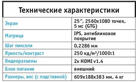 Побывавший у нас в тестовой лаборатории образец можно назвать оптимальным решением среди экранов такого типа. LG 25UM58-P имеет приятный дизайн корпуса с лакированной поверхностью и прекрасно смотрится на столе. Из регулировок положения экрана доступен только поворот по горизонтали. Производитель сэкономил также на интерфейсах — здесь предусмотрены лишь пара HDMI-разъемов и один выход на наушники. Во время теста монитор продемонстрировал очень хорошую яркость, контрастность и цветопередачу. Нам понравилась равномерная подсветка и широкий диапазон изменения яркости. Еще у модели удобное меню настроек, предусмотрены различные режимы отображения для графики, видео, чтения и игр.
