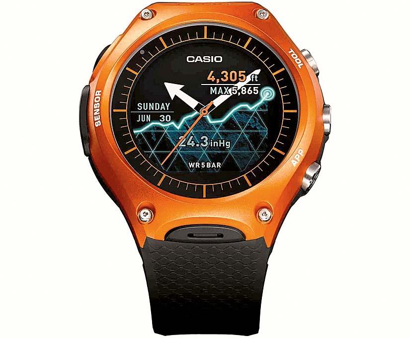 Первые умные часы от Casio — Smart Outdoor Watch WSD-F10 — оставляют позади практически всех конкурентов благодаря двухслойному экрану. Нижний слой — это круглый ЖК-дисплей с разрешением 320х300 точек. Над ним расположен монохромный дисплей. Как только выключается цветной LCD-экран, в работу вступает черно-белый. Он очень хорошо читается при ярком солнечном свете и экономит энергию. Во время теста Casio Smart Outdoor Watch сумели продержаться при непрерывном использовании более 38 часов. Также предусмотрен сенсорный экран, что делает доступным управление жестами.