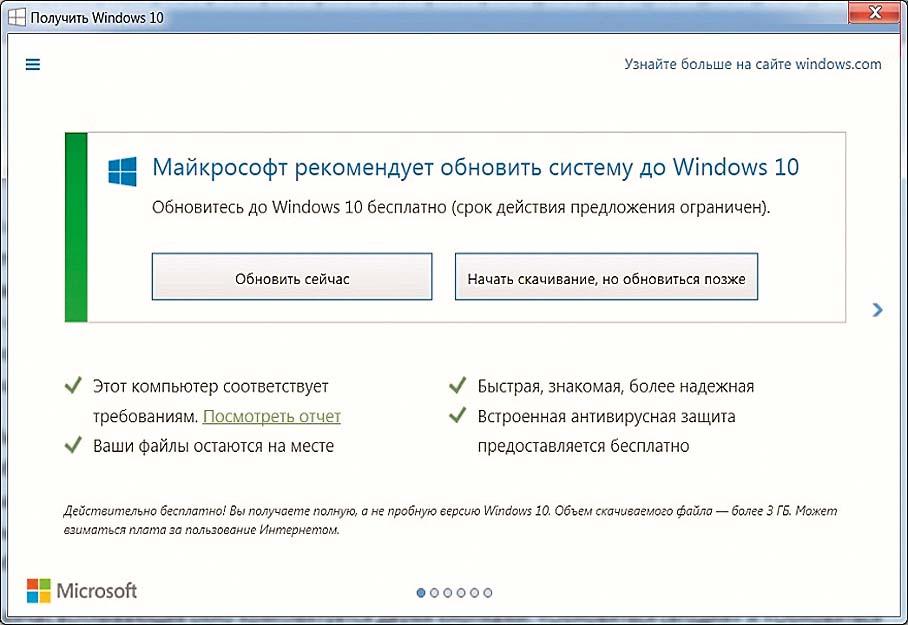 Не каждому пользователю уготовлен подарок в виде бесплатного апгрейда Windows. Существует пара условий, которые следует выполнить. Требования к аппаратному обеспечению при этом относительно мягкие: так, понадобится лишь процессор с тактовой частотой не менее 1 ГГц, а графический адаптер должен поддерживать DirectX 9 и драйвер WDDM 1.0. Для 32-битной версии системы достаточно 1 Гбайт оперативной памяти, 64-битная запросит уже 2 Гбайт. Поэтому теоретически «десятка» с большой долей вероятности будет работать на любом оборудовании моложе 10 лет.