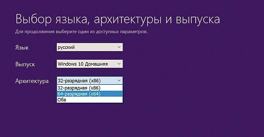 Установочный носитель с Windows 10 позволяет перейти с 32-битной на 64-разрядную архитектуру. Установку при этом необходимо выполнить в тот же раздел (см. справа), который у всех может быть разным.