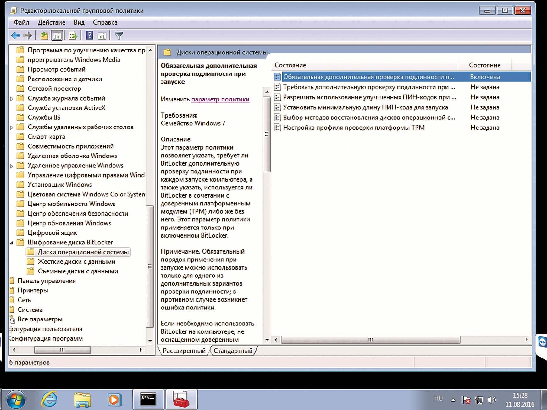BitLocker также функционирует без чипа TPM — правда, для этого нужно произвести некоторые настройки в редакторе локальной групповой политики