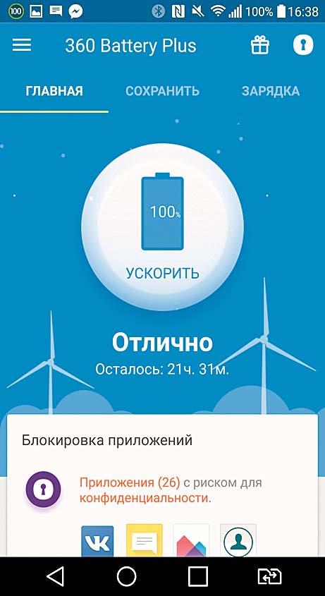 Слабым звеном многих смартфонов является слишком быстрая разрядка аккумулятора. 360 Battery обещает решить проблему, завлекая увеличением времени работы устройства на 50% и снижением времени на зарядку. Приложение работает следующим образом: с помощью его советов вы закрываете все нагружающие батарею программы и останавливаете приложения с автозагрузкой, которые выполняются при старте системы. При определенной конфигурации 360 Battery Plus способно все это делать автоматически в фоновом режиме. Кроме того, приложение оптимизирует системные настройки, например автоматическую блокировку экрана, под экономию питания. Мы протестировали 360 Battery Plus на устройстве Huawei Honor 7 с операционной системой Android 6.0. Оказалось, что на самом деле пользы от 360 Battery мало: при интенсивном использовании с полной яркостью смартфон держится около десяти часов, при этом время работы с активным экраном составляет в среднем шесть часов. После того, как мы задействовали 360 Battery, телефон при тех же условиях остался без питания через одиннадцать часов. В то время как в режиме ожидания аккумулятор разряжался чуть медленнее, при активном использовании никакой разницы мы не обнаружили. Таким образом, обещание увеличить срок работы устройства на 50% благодаря 360 Battery не выполняется. В отношении времени зарядки мы, как и следовало ожидать, также не заметили никакого улучшения. Honor 7 и Android 6.0 и так могут похвастаться встроенными функциями экономии питания. На прочих устройствах (в частности, с устаревшей системой Android) результаты могут быть иными. Кроме того, вы сами можете провести все упомянутые действия через настройки системы и диспетчер задач.