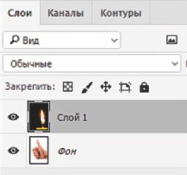 Откройте оба изображения в Photoshop и перейдите к снимку свечи. Комбинацией клавиш «Ctrl+A» выберите все изображение, с помощью «Ctrl+C» скопируйте его. Перейдите к фотографии руки и вставьте изображение свечи нажав «Ctrl+V» и установите параметр «Прозрачность» на «50%».