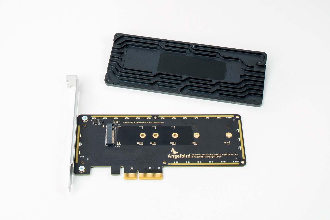 Для владельцев ПК, на наш взгляд, более удобным вариантом является адаптер PCIe. Для тестирования мы подобрали три продукта: Aqua Computer kryoM.2 evo примерно за 2500 рублей, Eisblock HDX-2 производства Alphacool (около 6000 рублей) и Angelbird Wings PX1 почти за 5000 рублей.
