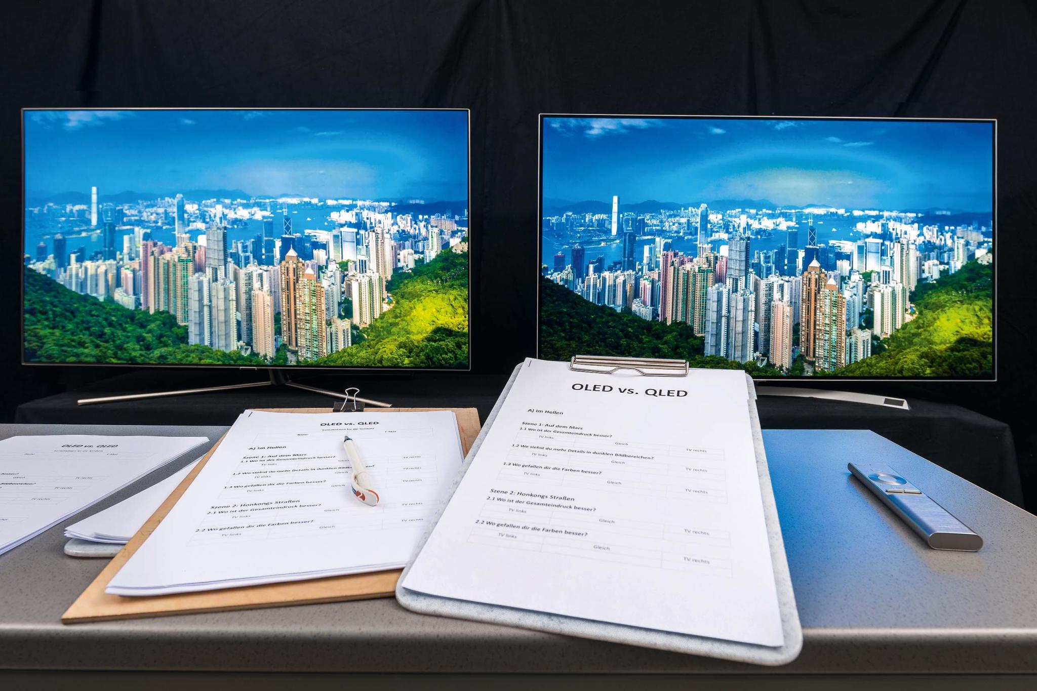 Для того чтобы выяснить это, через наше издательство мы пригласили в центр тестирований 48 добровольцев, не имевших опыта в испытаниях — насколько это возможно, — где они активно занимались изучением качества отображения обеих систем на примере двух расположенных рядом телевизоров с дисплеями OLED и QLED, просматривая различные тестовые эпизоды.
