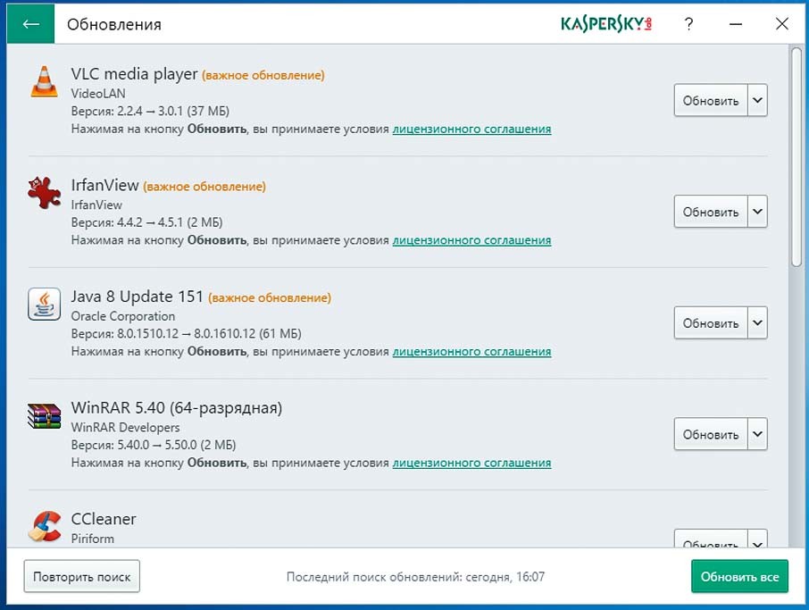 После удаления ненужных приложений проверьте состояние оставшихся программ. Для этого используйте Kaspersky Software Updater (support.kaspersky.ru/11827, есть на CHIP DVD). Инструмент отслеживает использование программ в системе и информирует пользователя о том, что какое-то ПО очень редко используется и имеет смысл его удалить. Кроме того, KSU распознает устаревшую версию программы, проверяя ее номер в базе программы. Примечательно, что автоматическое обновление ПО выполняется для наиболее распространенных бесплатных программ, таких, как браузеры и просмотрщики. Большие платные пакеты утилита самостоятельно не обновляет. И это очень хорошо, ведь мало ли какое ПО установлено на компьютере. Список отслеживаемого программного обеспечения можно найти на сайте программы.