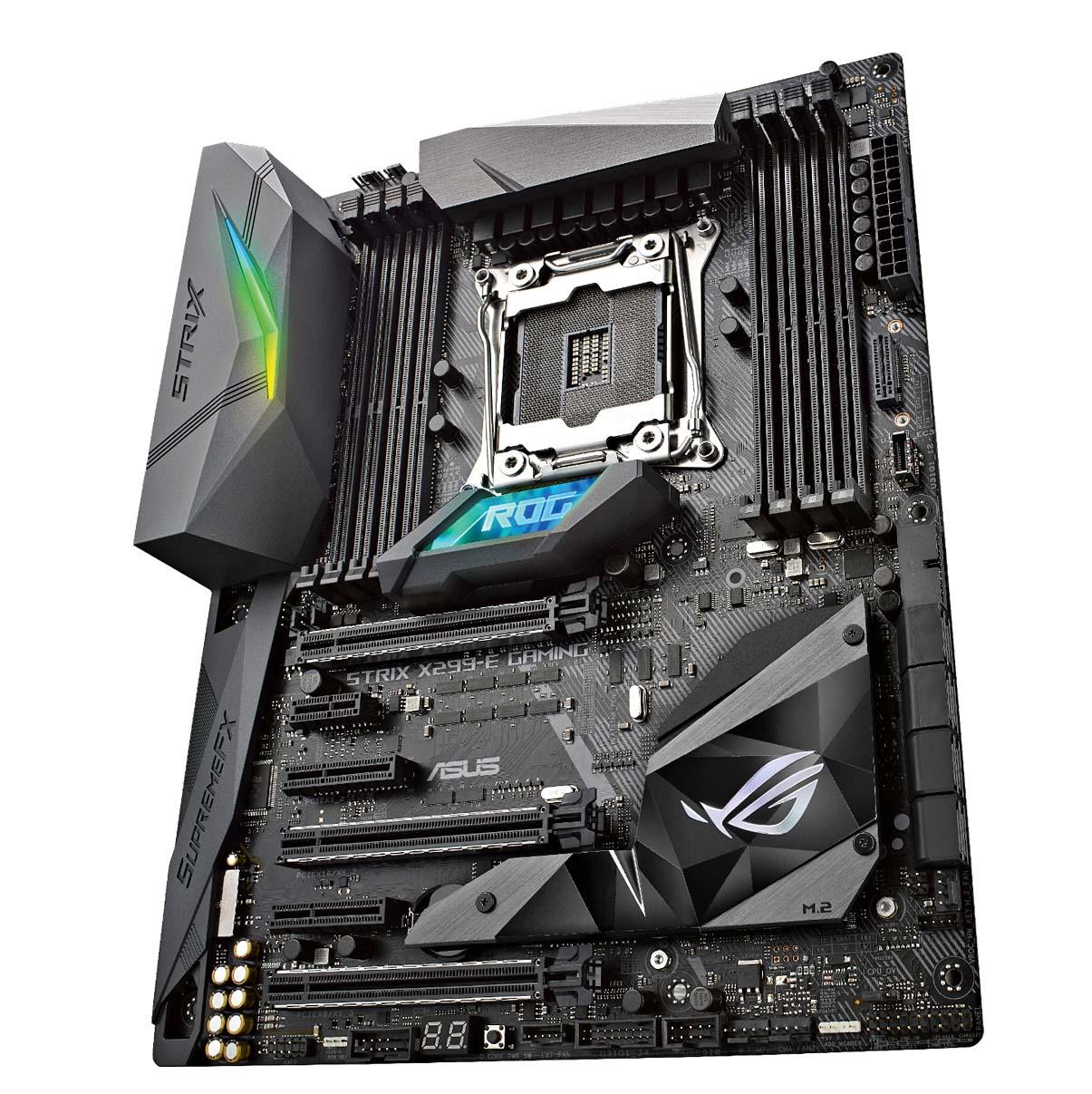 Материнская плата ASUS ROG STRIX X299-E Gaming с процессорным разъемом LGA 2066 и чипсетом Intel X299 поддерживает установку производительных CPU Intel на базе архитектуры Skylake-X и Kaby Lake-X. Предназначена она в первую очередь для оверклокеров и энтузиастов, которые хотят получить максимум от своего ПК и опробовать в деле новые процессоры Intel с шестью и более ядрами. Для установки оперативной памяти предусмотрено восемь слотов. Поддерживаются модули DDR4 с частотой до 4133 МГц общим объемом до 128 Гбайт (при установке CPU с числом ядер от шести) или до 64 Гбайт (при установке четырехъядерных CPU). В нижней части платы разместились шесть слотов PCI Express, три из которых (PCI Express 3.0 x16) укреплены металлизированными вставками. Плата может работать с тремя видеокартами NVIDIA/AMD в режиме SLI/CrossFireX.