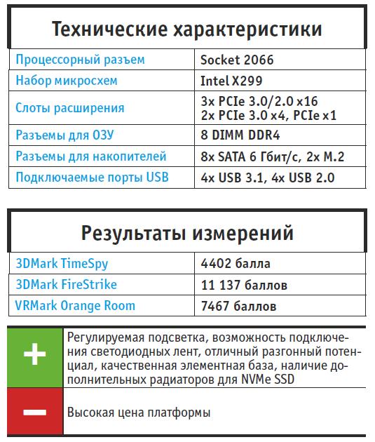 Звуковая подсистема SupremeFX построена на базе конденсаторов японского производства премиум-класса и топового 7.1-канального аудиокодека Realtek S1220A, который показывает хорошее соотношение «сигнал/шум» на линейном аудиовыходе и входе (120 и 113 дБ соответственно). Сетевые функции возложены на контроллер Intel Ethernet I219-V, который обеспечивает высокую пропускную способность и, как следствие, быстрый и плавный гейминг.
