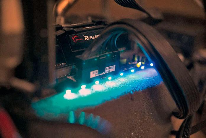 Роли подсветки для ПК в последнее время уделяется все больше и больше внимания — и неспроста, так как именно она добавляет платам уникальности и дает возможность придавать системному блоку привлекательный вид. ASUS постоянно экспериментирует с расположением светодиодов, но даже на простых платах вы сможете найти гирлянду из RGB-светодиодов. В PRIME их поставили с правого торца печатной платы и позволили создавать собственные профили.