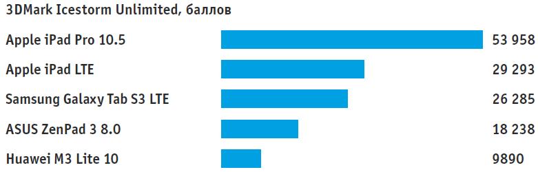 При тестировании в 3DMark планшеты Apple значительно опередили Samsung. Бюджетный ASUS тоже вполне быстрый.