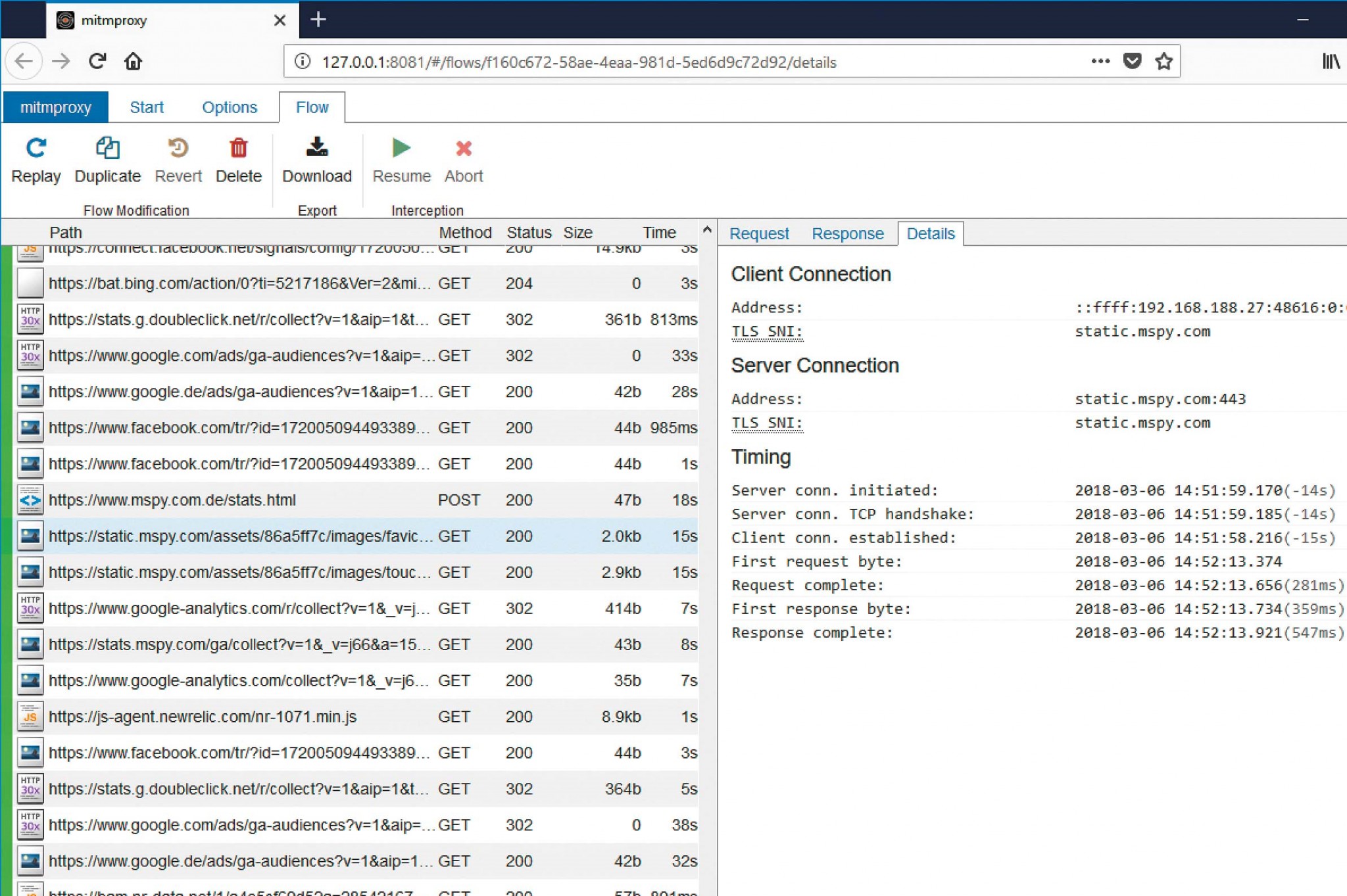 Впрочем, наше решение неопасно и помогает лишь прояснить для себя ситуацию. Для установки этого сертификата на смартфоне через браузер зайдите по адресу mitm.it. Здесь выберите свою ОС, в нашем случае Android, и подтвердите установку. После этого на своем ПК вы увидите также содержимое зашифрованных каналов передачи данных.