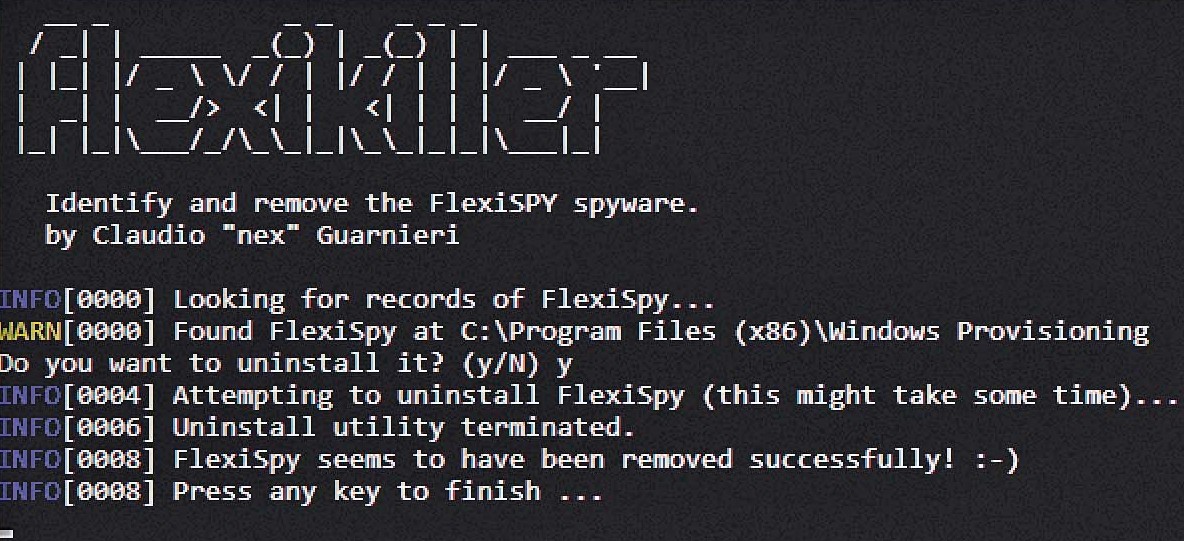 Большинство антивирусов вычисляют стандартные инструменты для шпионажа. Однако следите за тем, чтобы ваш пакет безопасности вовремя обновлялся и получал самые свежие сигнатуры. Если проверка антивирусом не дала результатов, переходите к следующему этапу. Воспользуйтесь специальными утилитами для обнаружения и удаления шпионского ПО, такими как сканер MalWarebytes или SpyBot — Search & Destroy (обе программы на CHIP DVD). И все же удаление вредоносного ПО порой становится нетривиальной задачей. Если антивирусы с ней не справляются, попробуйте решить ее с помощью инструмента, специально заточенного под удаление таких вредителей. Соответствующие программы зачастую обнаруживаются напрямую на странице разработчика антивируса. Содействие оказывают и такие белые хакеры, как Клаудио Гварнери, который подготовил собственную утилиту Flexikiller, уничтожающую шпионское ПО FlexiSpy (см. ниже).