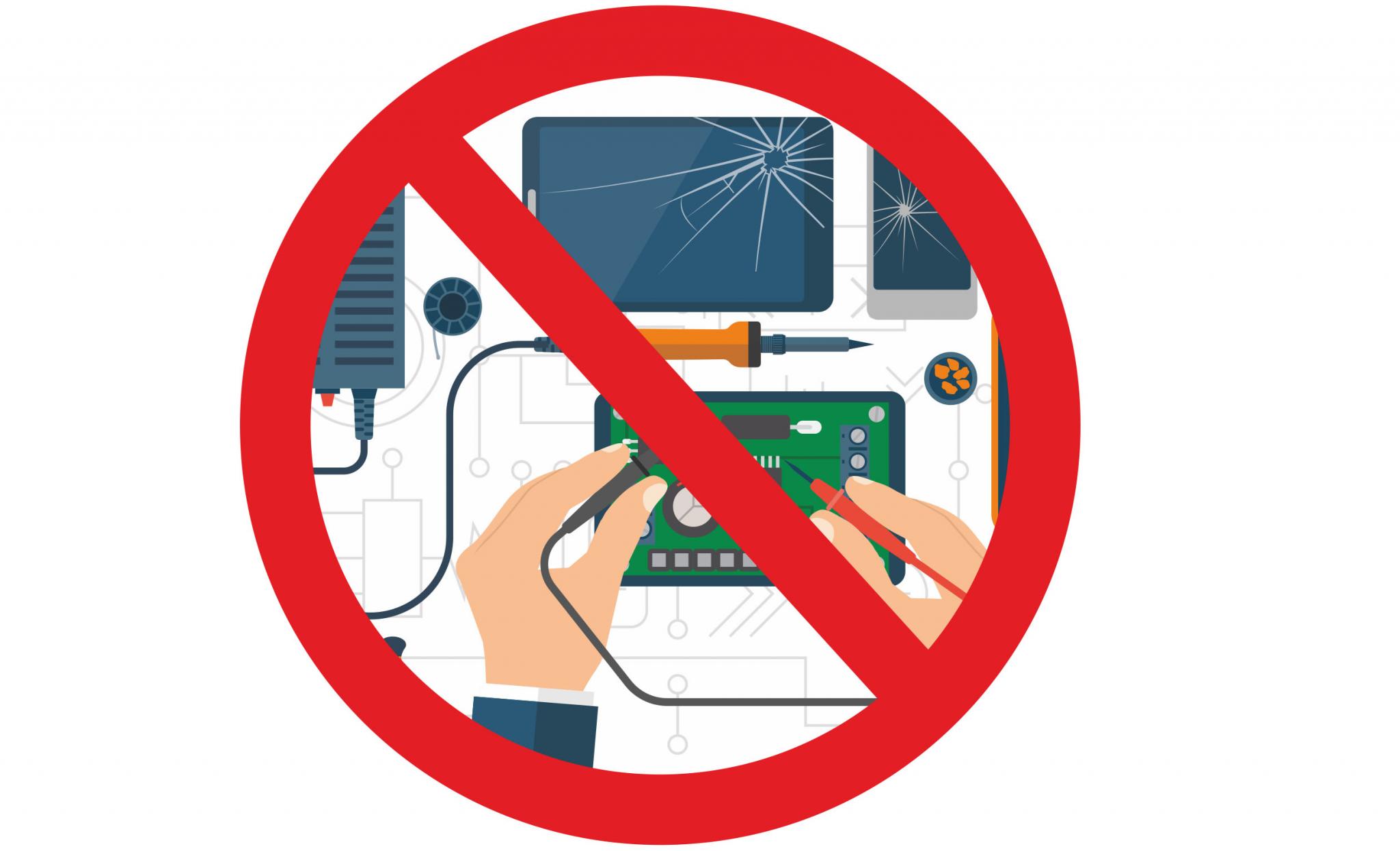Например, какое техническое обоснование можно привести тому, что в iPhone 7 компания Apple использует несколько различных типов винтов: помимо двух пятиконечных Pentalobe (Р2) внутри в основном находятся обычные винты с крестообразным шлицем (РН00), но в некоторых местах стоят винты с трехлопастным шлицем Tri-Wing (Y000)? У других производителей дело обстоит не лучше. Например, в августе 2013 года Институт надежности и микроинтеграции имени Фраунгофера (IZM) протестировал 21 модель планшетов и исследовал их пригодность к вторичному использованию и ремонту. Помимо прочего, исследователи пришли к следующему выводу: «Ремонт большинства устройств силами потребителей невозможен без повреждения деталей устройства».
