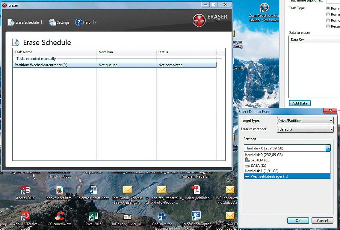 На картах microSD часто хранятся личные фотографии и данные, которые, разумеется, лучше надежно удалить, перед тем как продать или отдать накопитель памяти. Лучше всего это сделать с использованием специальных утилит, таких как Eraser (eraser.heidi.ie), которые производят надежное форматирование SD-карты с последующим заполнением ее пустой информацией. После установки программы подключите карту microSD к компьютеру с помощью USB-карт-ридера, чтобы она отображалась в Проводнике как съемный диск. Теперь выберите в выпадающем меню раздела «Расписание задач» пункт «Новая задача» и в следующем окне «Параметры задачи» нажмите кнопку «Добавить данные». Открывается окно «Выбрать данные для удаления». В разделе «Тип» выберите опцию «Диск/Раздел» и в выпадающем меню перейдите к USB-картридеру, который отображается в списке как ««Съемный диск». Затем задача появляется в расписании. Кликнув по ней правой кнопкой мыши, выберите команду «Запустить сейчас». После завершения процесса удаления данные действительно надежно удалены, в отличие от стирания с использованием Проводника.