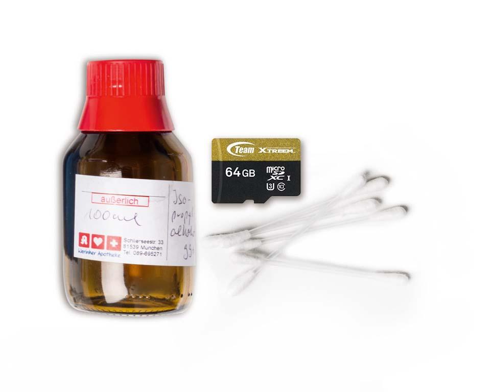 Контакты microSD-карты можно почистить с помощью ватных палочек и спирта