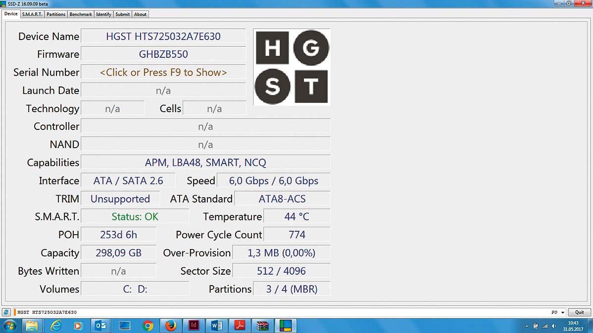 Срок службы SSD-накопителя зависит, как правило, не от времени эксплуатации, а от записанного объема данных. Но все же лучше всего будет учитывать оба параметра. Помощь при этом оказывает такая утилита, как SSD-Z. После установки выберите в раскрывающемся меню категории «Device» SSD-накопитель, срок службы которого вы хотели бы узнать. Если у вас используется только один SSD, он будет уже выбран в этом разделе. Теперь обратите внимание на значения «POH» («Время работы») и «Bytes Written» («Записано байт»): они имеют решающее значение для определения срока службы вашего SSD-накопителя. Значение «POH» показывает количество часов работы SSD. Значение в пункте «Bytes Written» определяет объем данных, записанных ранее на твердотельный носитель. На основании доступных в Интернете сведений можно предположить оставшееся время работы вашего SSD — производители всегда указывают среднее значение срока службы SSD-накопителя в отношении числа часов эксплуатации и объема записанных данных. Теперь следует сравнить значения, определенные для вашего накопителя, со значениями, указанными производителем. Если значение в пункте «Bytes Written» утилиты SSD-Z сильно приблизилось к значению, указанному производителем, рекомендуется заменить используемый SSD. То же самое относится и к часам работы, хотя для определения срока службы накопителя сохраненный объем данных обладает приоритетом перед числом часов работы.
