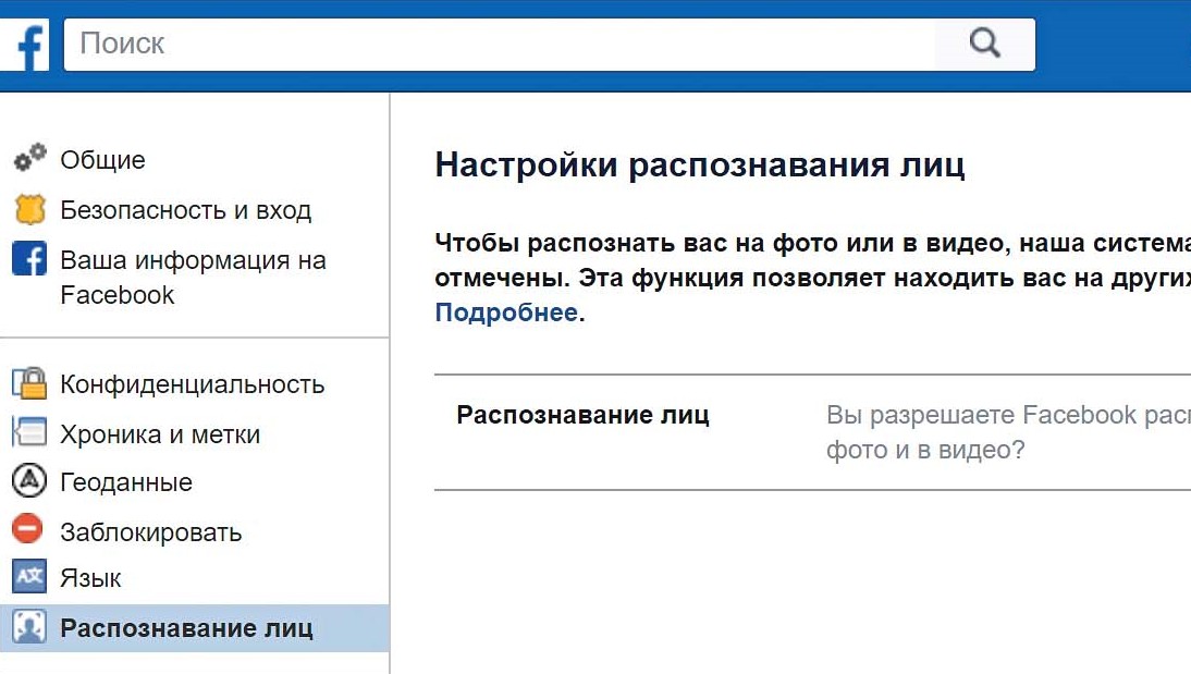 Чтобы обезопасить свою приватность в Facebook (соцсеть признана в РФ экстремистской и запрещена), для начала отключите функцию распознавания лиц на фотографиях и в видео. Если вы используете мобильное приложение, для этого нужно зайти в свой аккаунт и открыть «Ваш профиль». Далее через пункт «Настройки аккаунта» или «Быстрые настройки конфиденциальности» перейти в раздел «Настройки распознавания лиц» и отключить данную функцию.