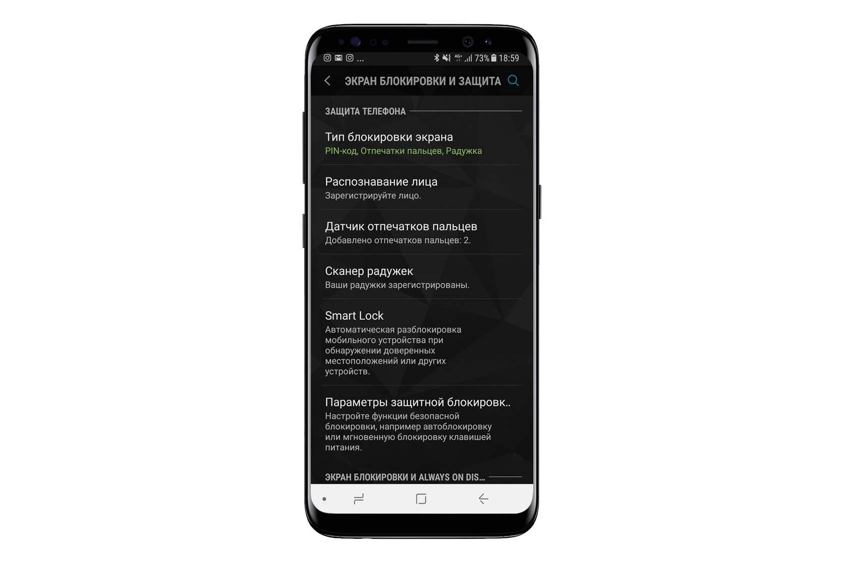 В Samsung S8 можно настроить три биометрических способа проверки. Однако все они уязвимы. Защитить их можно лишь с помощью скрытых опций