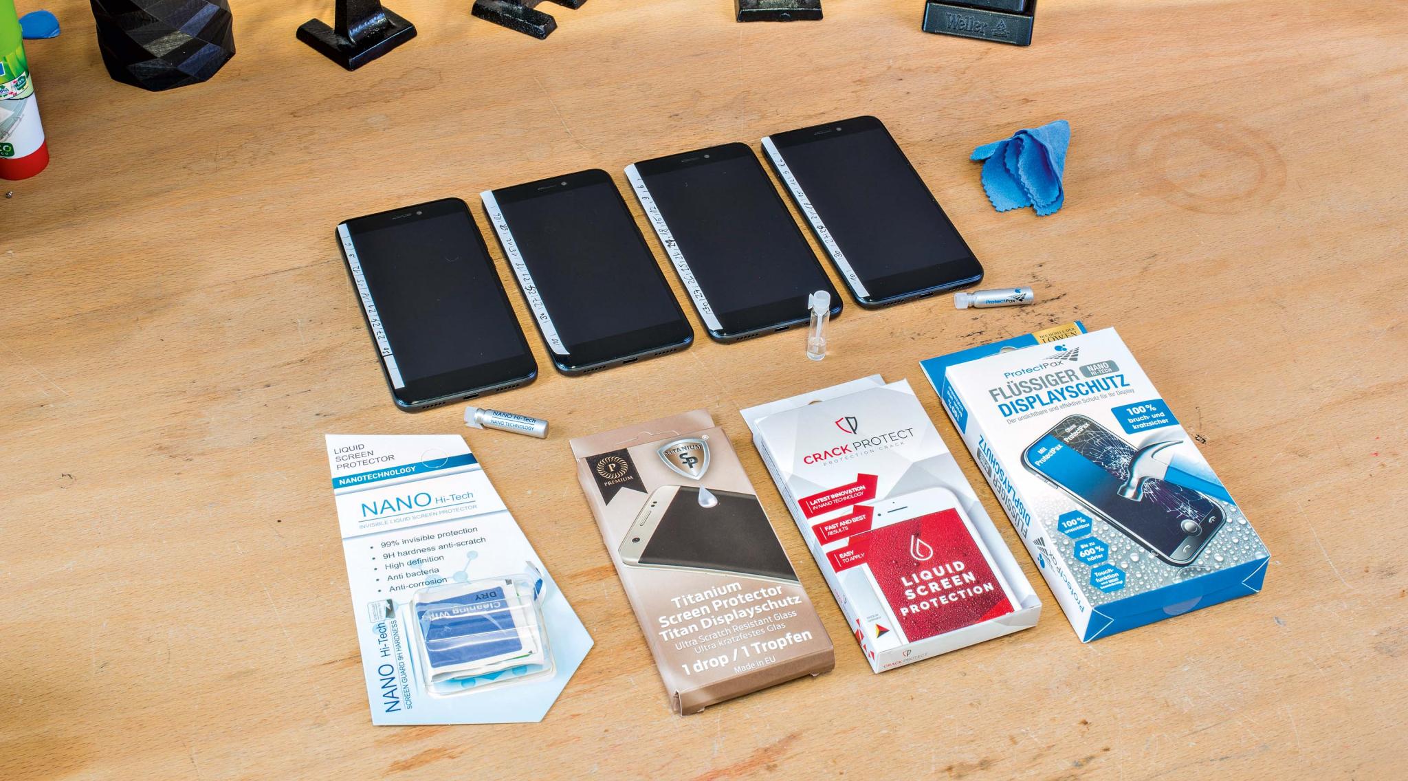 Самым большим опасением каждого владельца смартфона является повреждение дисплея. Это может случиться даже при падении с небольшой высоты, а ремонт при этом обойдется дорого. Решение данной проблемы было предложено молодыми стартаперами из Дюссельдорфа. Основатели проекта, Паскаль Бухен и Энтони Филипиак, утверждали, что создали защитную жидкость для дисплея, которая оберегает экраны телефонов и планшетов не только от царапин, но и от сильных повреждений. Просто необходимо нанести на экран содержащее наночастицы «жидкое стекло», и после 12 часов отверждения материала прочность увеличивается на 600%.