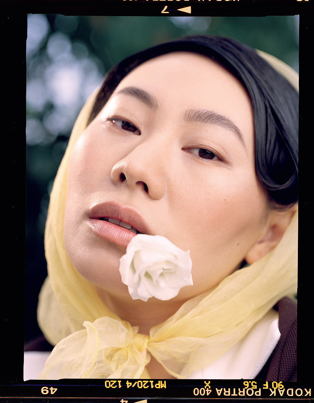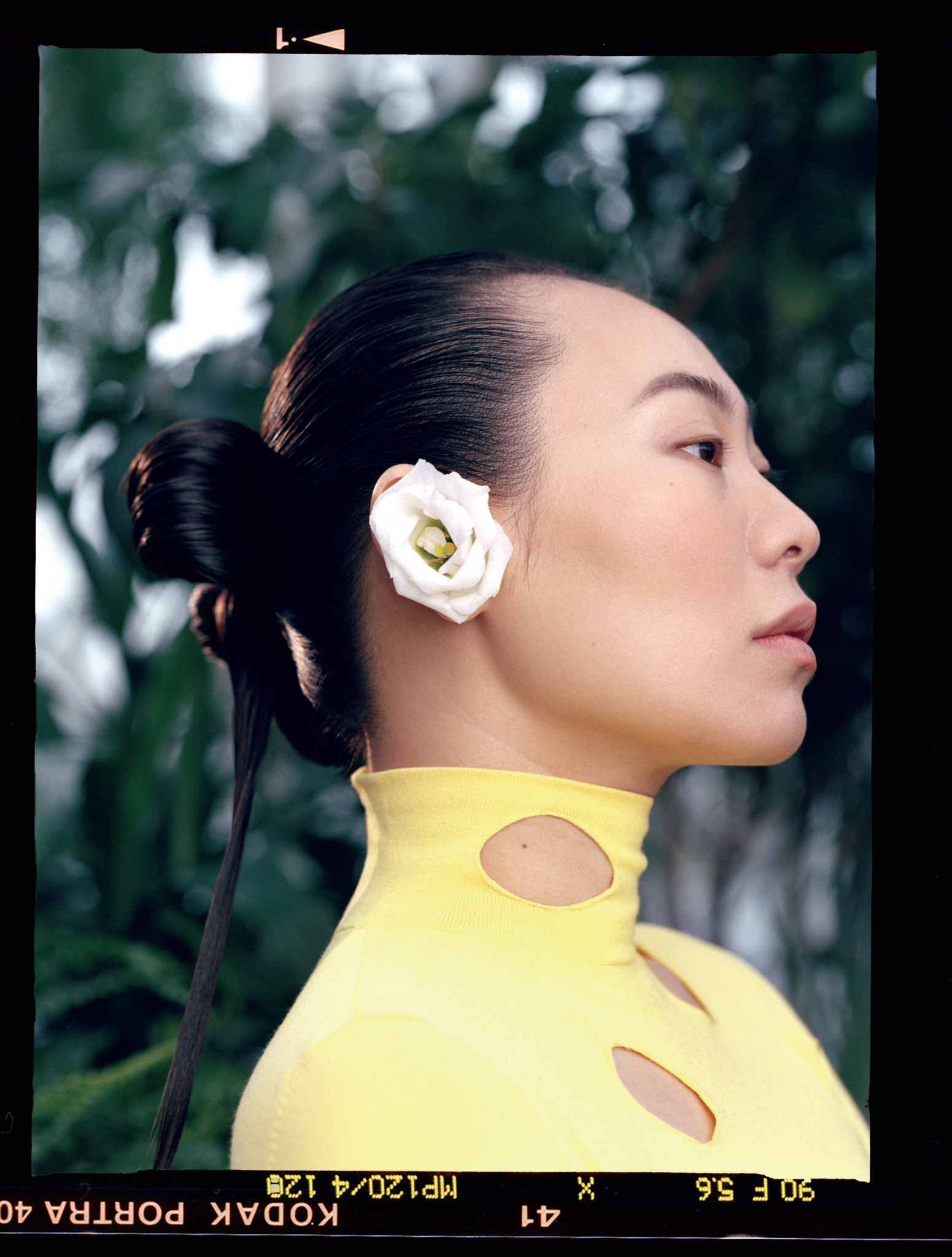 Ян Гэ – само очарование. Она веселит нашу съемочную команду байками о театре, непринужденно позирует в коротком топе на холоде, много смеется и успевает записывать истории в Instagram (соцсеть признана в РФ экстремистской и запрещена). Когда появляется окошко для интервью, актриса всё так же с улыбкой подзывает меня к себе и первым делом делает комплимент моей помаде. Дальше разговор идет легко и весело.