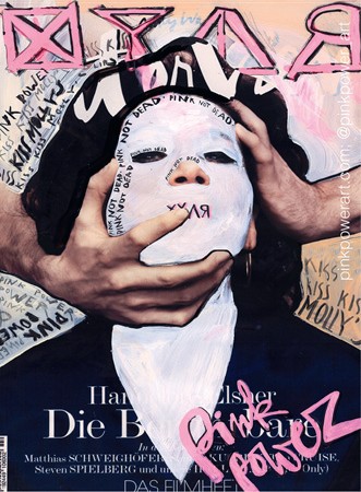 Pink Power – это столкновение бескомпромиссной уличной культуры с глянцем. Жесткие высказывания и эмоционально выразительные персонажи противостоят розовому цвету, который принято считать девчачьим и наивным. В моей интерпретации розовый – метафора живого и настоящего, из плоти и крови.