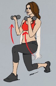 2. В таком положении сгибай и разгибай руки с гантелями в течение 30 секунд.