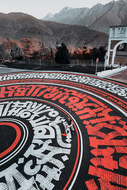Покрас Лампас, один из самых известных российских стрит-арт-художников, расписал главную площадь курорта Красная Поляна. На высоте 960 м он зашифровал сообщение: «Мы создаем новую визуальную культуру».