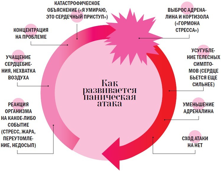 Единичная паническая атака (ПА) может возникнуть хотя бы раз в жизни у любого здорового человека как реакция на физиологический или эмоциональный стресс либо вовсе без видимого повода. Главная причина панических атак – неправильная интерпретация неожиданных телесных ощущений. После первого случая пострадавший запоминает свое ужасное состояние, однако вызвавшие эту панику мысли, как правило, не запоминаются. Но именно они и являются толчком для возникновения ПА в дальнейшем. Для следующего приступа достаточно прислушаться к своему телу и – вуаля! – ПА случается уже без видимого повода. Страх ее повторения формирует охранительное поведение (избегание ситуаций, в которых ранее возникали ПА или предполагаемо могут возникнуть). Если ты замечаешь, что это явление стало регулярным, возможно, имеешь дело с паническим расстройством (ПР), а оно входит в Международную классификацию болезней как отдельный диагноз.