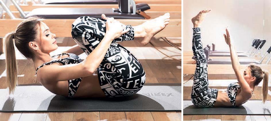 Ляг на спину. Прижми ноги к торсу, подтягивая колени к плечам. Подбородок – к грудной клетке, смотри на живот. На вдохе подними руки и ноги. На выдохе вернись в исходное положение – и так 10 раз.