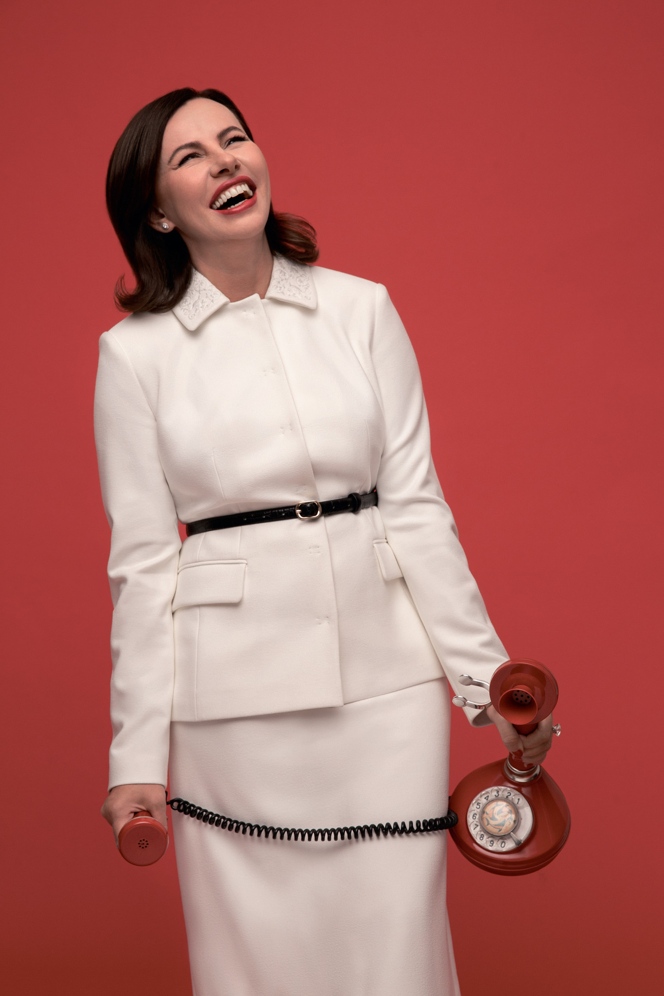 Жакет, юбка, Ololol; ремень, Chloé; серьги, Parure Atelier