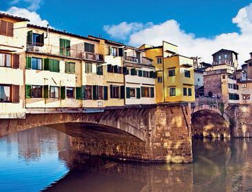 С середины XIV века здесь селились мясники, а позже их лавки заняли ювелиры. Говорят, это случилось примерно тогда, когда архитектор и художник Вазари построил поверх домиков крытый коридор. Правитель Козимо I Медичи ходил по нему из Палаццо-Веккьо во дворец Питти, а сегодня там находится прекрасная художественная галерея.
