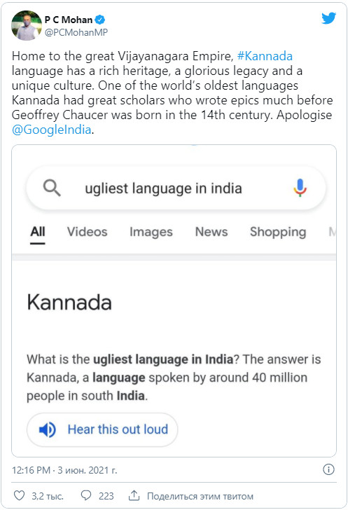 Некоторое время назад в Индии приключилась история: поисковик Google, если бы вы спросили его, какой язык самый некрасивый (ugliest) в Индии, не сомневаясь ответил бы: кáннада, — и привел бы небольшую справку об этом языке в сниппете. Почему поисковик так решил? Ошибка алгоритма, ответили в компании, после того как в интернете разразился грандиозный скандал с участием местных политиков высокого уровня и компанию призвали извиниться перед примерно 50 миллионами носителей этого языка. И правда: обидно, когда твой язык, богатый и древний, ни с того ни с сего называют самым некрасивым, не приводя никаких обоснований такого определения. Другое дело, если бы его назвали необычным или уникальным, как один из тех языков, о которых мы расскажем ниже.