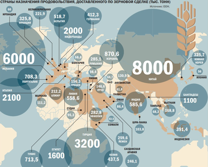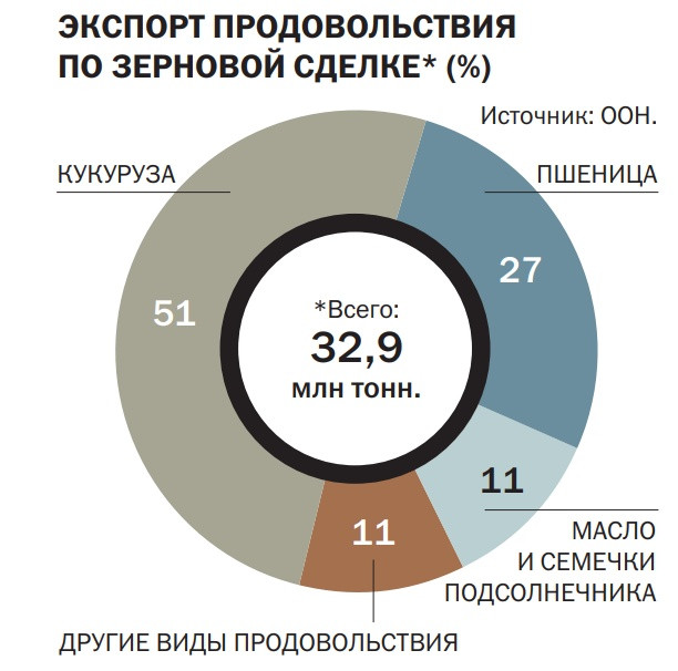 По данным ООН на 15 июля, в рамках зерновой сделки с Украины было экспортировано 32 млн тонн зерна, включая 16,8 млн тонн кукурузы и 8,9 млн тонн пшеницы. Турецкие СМИ со ссылкой на президента Турции Реджепа Тайипа Эрдогана сообщали, что тот намерен продолжить усилия для возобновления действия сделки, но многое зависит от готовности западных стран выполнить условия РФ. Директор «Совэкона» Андрей Сизов считает, что предпосылок для возобновления зерновой сделки пока не видно. Кроме того, важность соглашения для украинского экспорта и, как следствие, мирового баланса цен на зерно ослабла, так как ключевым каналом поставок зерна с Украины стали дунайские порты, считает эксперт.