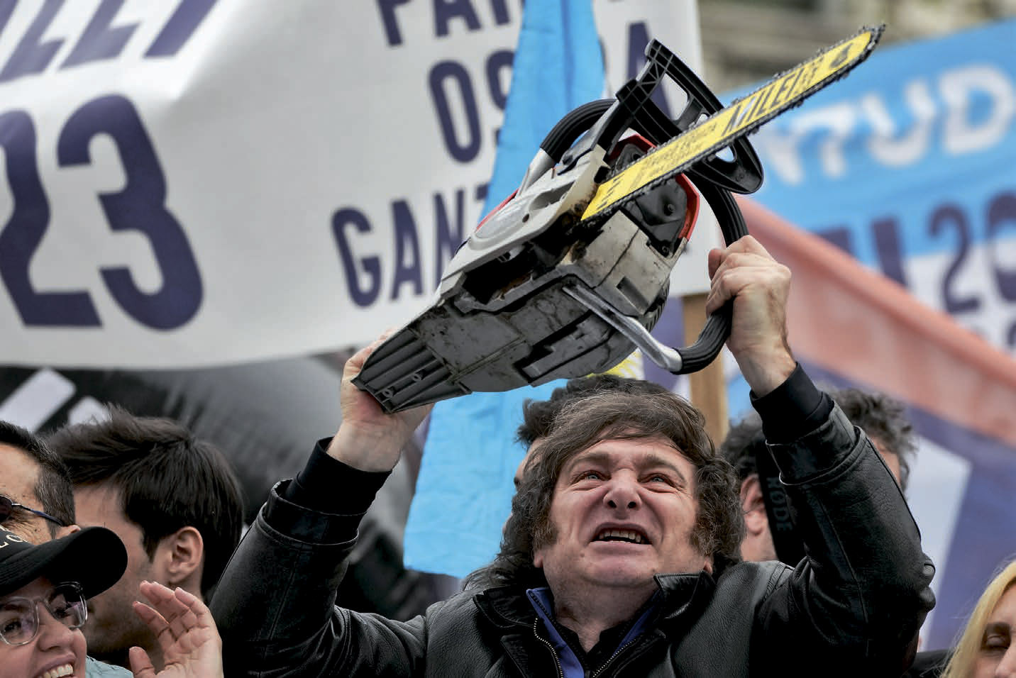 В 2023 году Хавьер Милей выставил свою кандидатуру на президентских выборах. Одним из символов его избирательной кампании стала бензопила, с которой он приходил на митинги. Бензопила была символом урезания расходов бюджета и снижения вмешательства государства в экономику.
