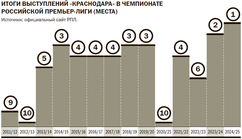 Когда в Европе говорят про стремительные взлеты, обычно имеют в виду те клубы из сильнейших континентальных лиг, которые и в самом деле быстро превратились из просто сильных в безумно сильные, претендующие на самые престижные призы,— «Челси», преобразившийся после его покупки Романом Абрамовичем, «Манчестер Сити» и только что выигравший наконец вслед за ними Лигу чемпионов ПСЖ, в которые водопадом хлынули деньги из ОАЭ и Катара. Но «Краснодар» сравнивать с ними глупо, поскольку лондонцы, манчестерцы, парижане — это все команды, у которых и до перехода в руки щедрых хозяев была долгая, насчитывающая десятилетия, история. А краснодарский взлет, начавшийся примерно в тот же период, когда гигантскими ресурсами обзавелись английские и французский неофиты,— это взлет с нулевой отметки без каких-либо оговорок.