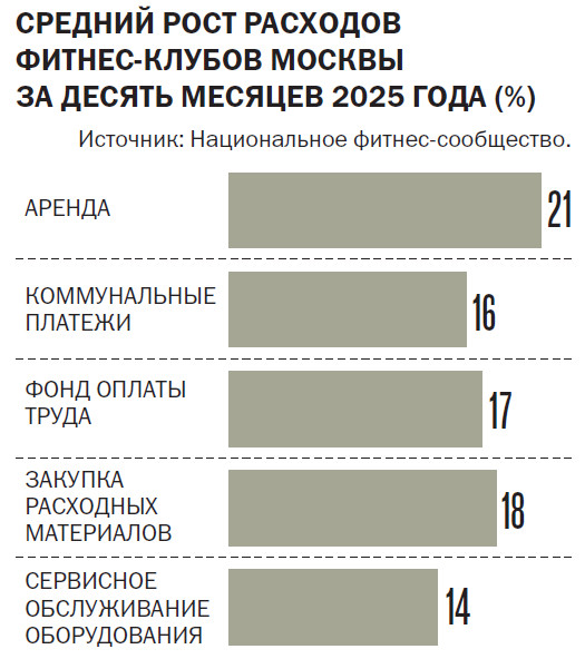 «По нашим данным, только 14,3% участников рынка за январь—октябрь 2025 года сумели сохранить цены на уровне прошлого года, треть клубов (33,3%) повысила стоимость услуг на 11–15%, еще 28,6% ограничились ростом на 6–10%, а 23,8% — до 5%. В среднем же по стране рост цен фитнес-услуг составил около 9,7%»,— говорит госпожа Силина. При этом затраты фитнес-клубов за тот же период выросли на 17–19%, отмечает эксперт. По итогам 2025 года цены на фитнес увеличатся в среднем на 10–12%, при этом в Москве рост будет минимальным, а в регионах стоимость увеличится более чем на 10%, прогнозирует господин Боровиков. По его оценкам, в 2026 году клубные карты подорожают еще не менее чем на 10%. В свою очередь, госпожа Силина прогнозирует, что пик роста стоимости услуг и клубных карт придется на январь-февраль 2026 года.