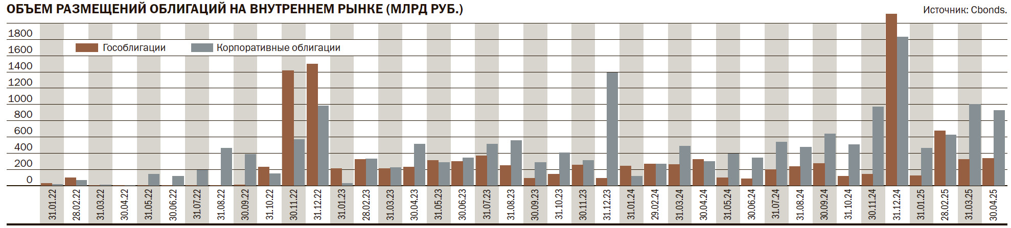 Старт 2025 года стал самым успешным для российского рынка долгового капитала за всю его историю. По данным Cbonds, с января по апрель компании и банки провели размещения 610 выпусков облигаций суммарным объемом более 3 трлн руб. Это в два с половиной раза выше результата за аналогичный период 2024 года и лучший показатель для данного периода времени. Основной вклад в общий объем размещений внесли компании реального сектора. По оценке «Денег», на этих эмитентов пришлось более 70% всего объема размещений, еще около 18% — на компании финансового сектора (банки, институты развития, лизинговые компании и прочих представителей финансового сектора).